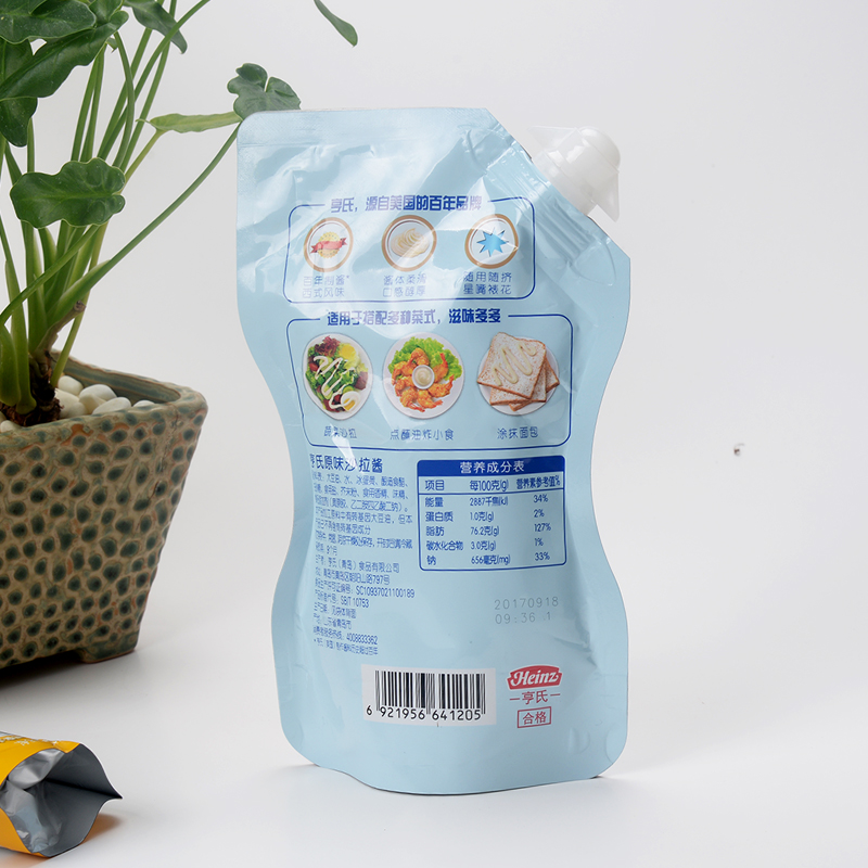 【飛富潤(rùn)】沙拉自立吸嘴袋 2020/09/04 自立吸嘴袋 鋁箔袋 2794 0材質(zhì):PET/AL/PA/RCPP復(fù)合產(chǎn)品特點(diǎn):具有透明五毒無味密封性好防污保鮮延長(zhǎng)保質(zhì)期等作用適用范圍:干貨冷藏食品休閑食品水果蔬菜藥品肉制品等各種食品包裝